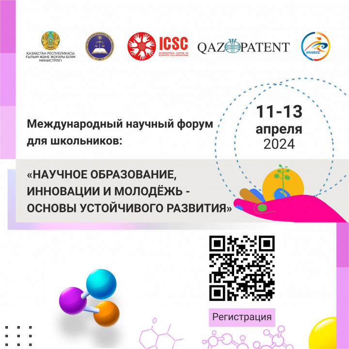 11-13 апреля 2024 года в городе Астана состоится II-й Международный научный форум для школьников – победителей международных конкурсов (далее – Форум). Мероприятие приурочено к празднованию Международного Дня интеллектуальной собственности, Дня работников науки Казахстана и 125-летия академика Каныша Сатпаева.