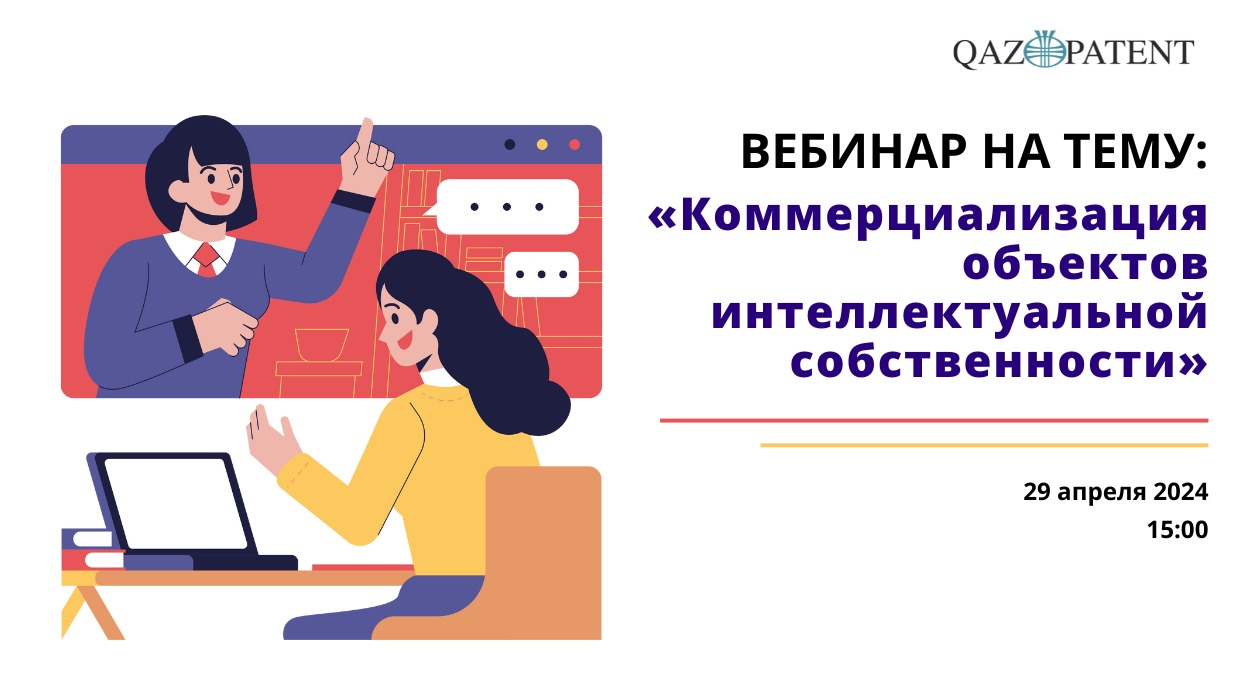 29 апреля в 15:00 Qazpatent проведет вебинар для магистрантов, докторантов и профессорско-преподавательского состава Евразийского Национального Университета имени Л.Н. Гумилева на тему «Коммерциализация объектов интеллектуальной собственности».