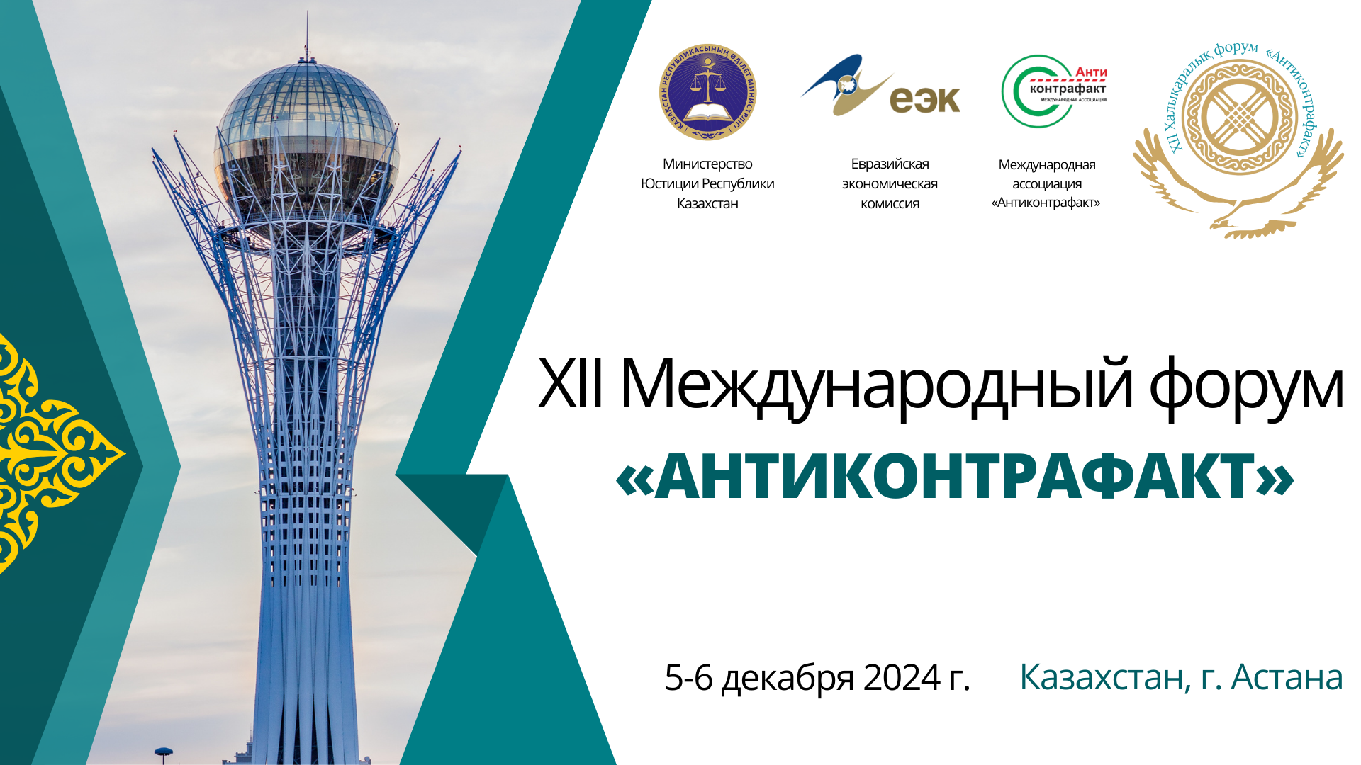 XII Международный форум «Антиконтрафакт», посвященный вопросам охраны и защиты прав в сфере интеллектуальной собственности пройдет 5-6 декабря 2024 года в Республике Казахстан, г. Астана. Организаторами форума выступят Министерство юстиции Республики Казахстан, Евразийская экономическая комиссия и Международная ассоциация «Антиконтрафакт».