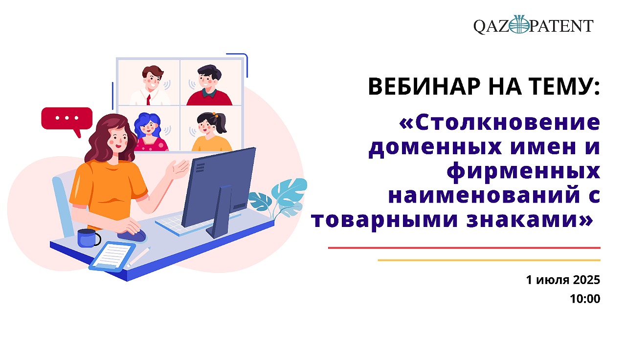 1 июля Qazpatent проведет вебинар для сотрудников Департаментов юстиции Республики Казахстан и Департаментов экономических расследований на тему «Столкновение доменных имен и фирменных наименований с товарными знаками».