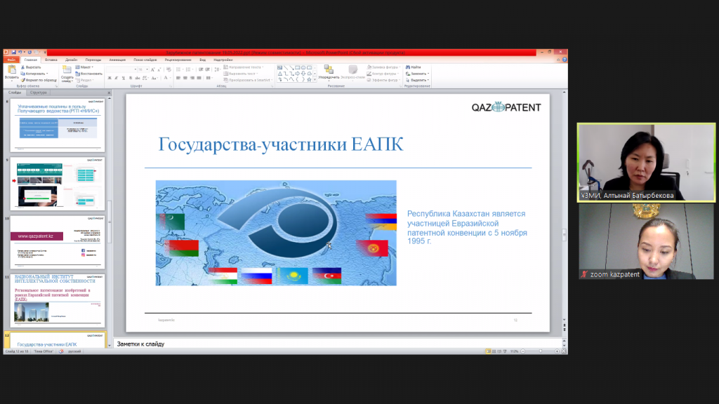 Qazpatent's experts covered issues of state policy in the field of intellectual property in Kazakhstan, legal protection of inventions and utility models, regional patenting of inventions under the Eurasian Patent Convention (EAPC), as well as commercialisation of intellectual property objects.
