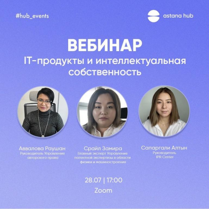 A joint webinar was held with the International Technopark of IT Startups Astana Hub on the protection and protection of rights to IT products