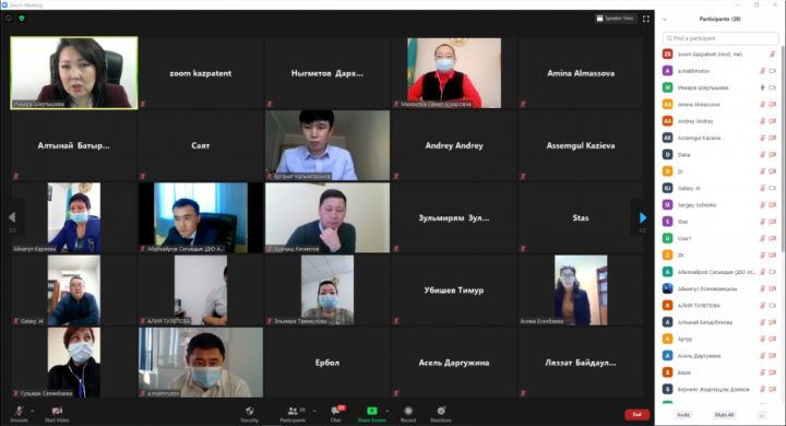 Kazpatent held an online webinar on the legal IP protection for employees of the Intellectual Property Rights Departments under the local justice authorities of Aktobe, Atyrau, West Kazakhstan and Mangistau regions, as well as representatives of Atameken Chambers of Entrepreneurs and representatives of small and medium-sized businesses on November 26.