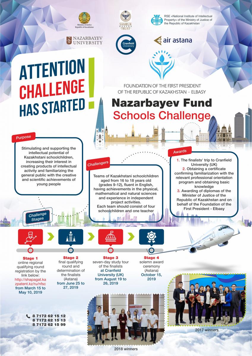 The Challenge is organized by the Ministry of Justice of the Republic of Kazakhstan, Nazarbayev University, National Institute of Intellectual Property and Cranfield University (United Kingdom).