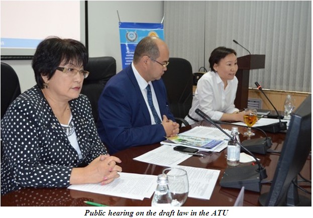 On September 30, 2016 at 10.00 in Almaty Technological University Public hearing on the draft law of the Republic of Kazakhstan “On amendments and supplements to some legislative acts on legislation improvement in the field of intellectual property” (hereinafter – draft law) was held with the participation of representatives of the Ministry of Justice, RSE “National Institute of Intellectual Property” (hereinafter – RSE “NIIP” of MJ of RK) and academic teaching staff of the university.
