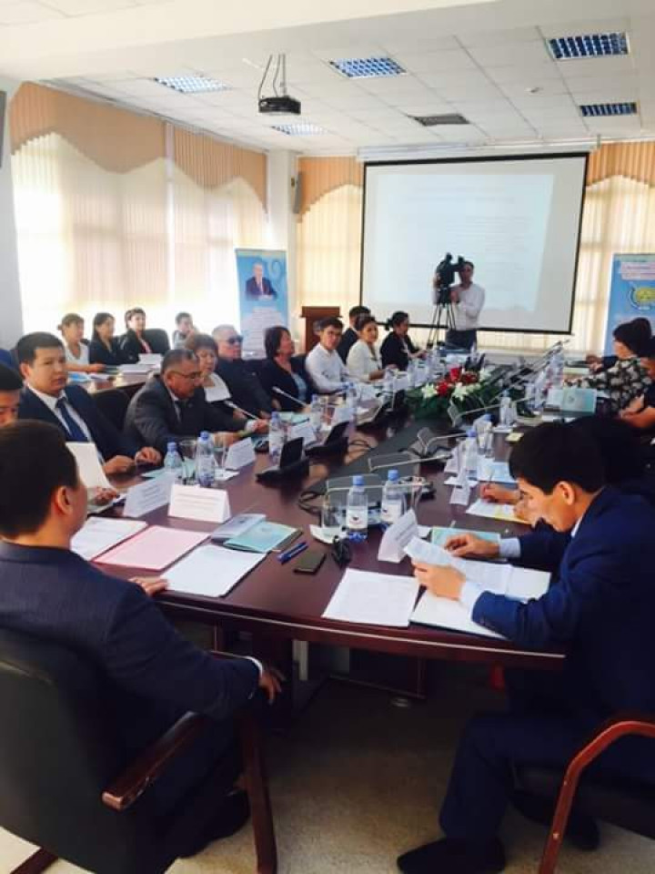 In order to increase the indicator on "Protection of intellectual property" of the Global competitiveness index of the World economic forum the roundtable, organized by the Department of Justice of Kyzylorda region headed by K.Saparov, with the participation of M.Yelibayev, Director of the branch of RSE "National Institute of Intellectual Property" MJ RK in Shymkent city, was held in the meeting hall of the regional central library named after A.Tazhibaev on September 20, 2016.