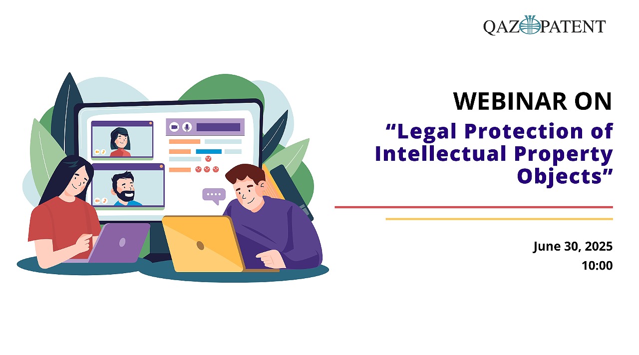On June 30, Qazpatent will hold a webinar for employees of the Departments of Justice of the Republic of Kazakhstan and Departments of Economical Investigations on the topic "Legal protection of intellectual property objects".