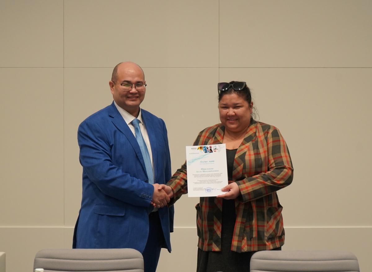 Дөңгелек үстел барысында Казпатент директорының м.а. Абзал Естаев патенттік сенім білдірілген өкіл Модангуль Тагбергенова мен Әсел Ибрагимоваға алғыс хаттар табыс етті.
