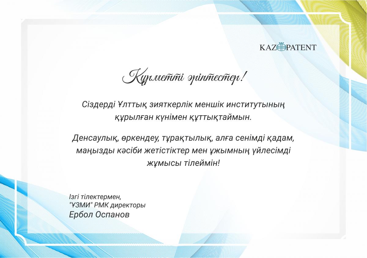 Директордың Қазпатенттің құрылған күнімен құттықтау