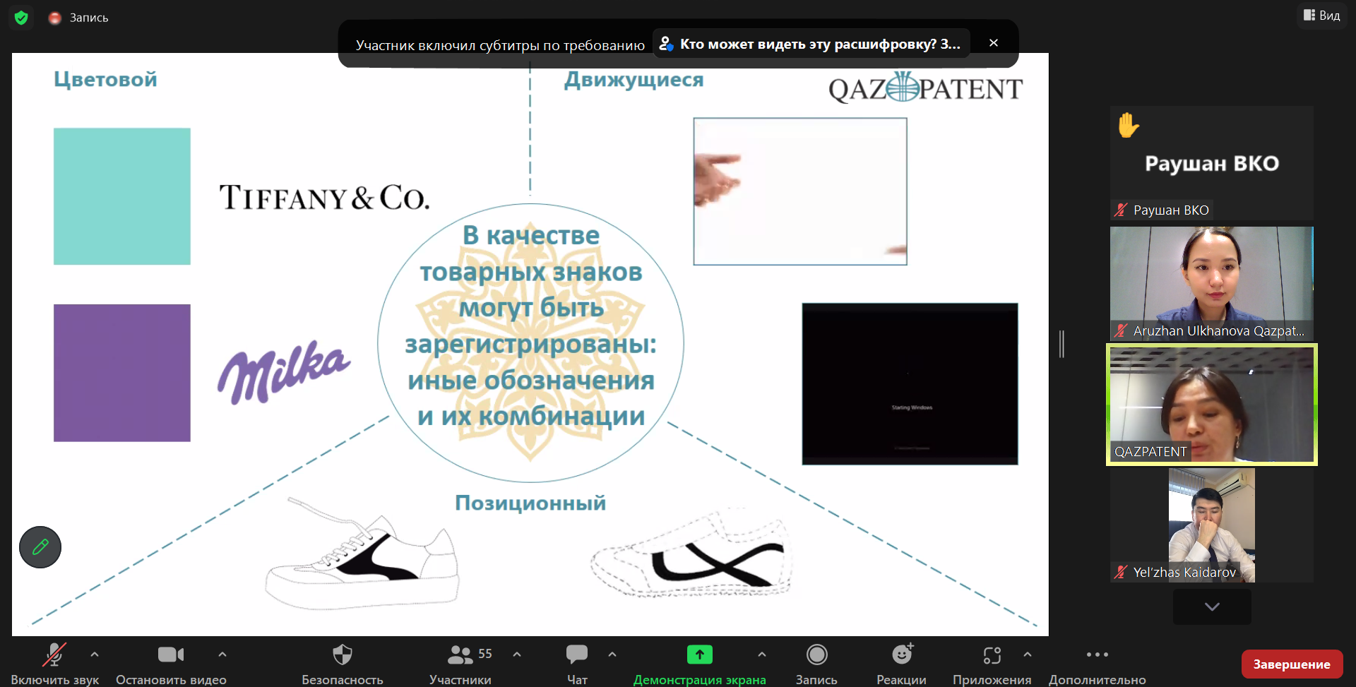 Вебинарға қатысушыларды тауар таңбасын тіркеу, географиялық көрсеткіштерді тіркеудің артықшылықтары, қорғау құжаттарының қолданылу мерзімдері, сондай-ақ өнертабыстардың пайдалы модельдерден айырмашылығы мәселелері қызықтырды.