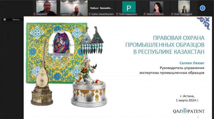 Вебинар шеңберінде Қазақстан Республикасының және әлемдегі авторлық құқық мәселелері, сондай-ақ өнеркәсіптік үлгілерді құқықтық қорғау ерекшеліктері талқыланды.