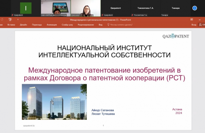 Вебинар шеңберінде Қазақстандағы және әлемдегі авторлық құқық, өнертабыстар мен пайдалы модельдерді патенттеу, Патенттік кооперация туралы шартқа (РСТ) сәйкес өнертабыстарды халықаралық патенттеу мәселелері, сондай-ақ Еуразиялық патенттік Конвенцияға сәйкес өнертабыстарды өңірлік патенттеу мәселелері талқыланды.