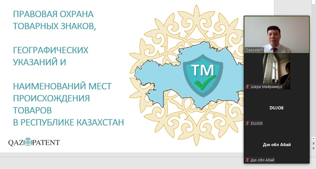 Вебинар шеңберінде өз туындысына авторлық құқықты тіркеу және тауар белгілерін, географиялық нұсқамалар және тауарлар шығарылған жерлердің атаулары құқықтық қорғау мәселелері ашылды.