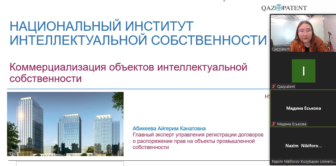 Вебинар аясында авторлық құқық, өнертабыстар мен пайдалы модельдерді патенттеу, сондай-ақ зияткерлік меншік объектілерін коммерцияландыру мәселелері ашылды.