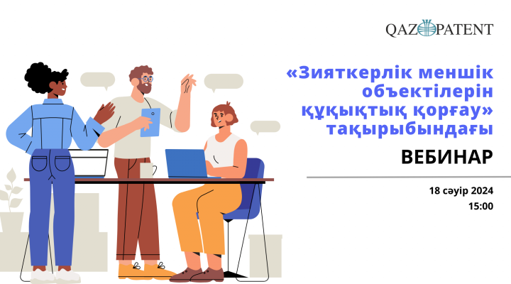 18 сәуірде сағат 15:00-де Qazpatent әл-Фараби атындағы Қазақ Ұлттық университетінің студенттеріне, қызметкерлеріне және профессор-оқытушылар құрамы үшін «Зияткерлік меншік объектілерін құқықтық қорғау» тақырыбында вебинар өткізеді.