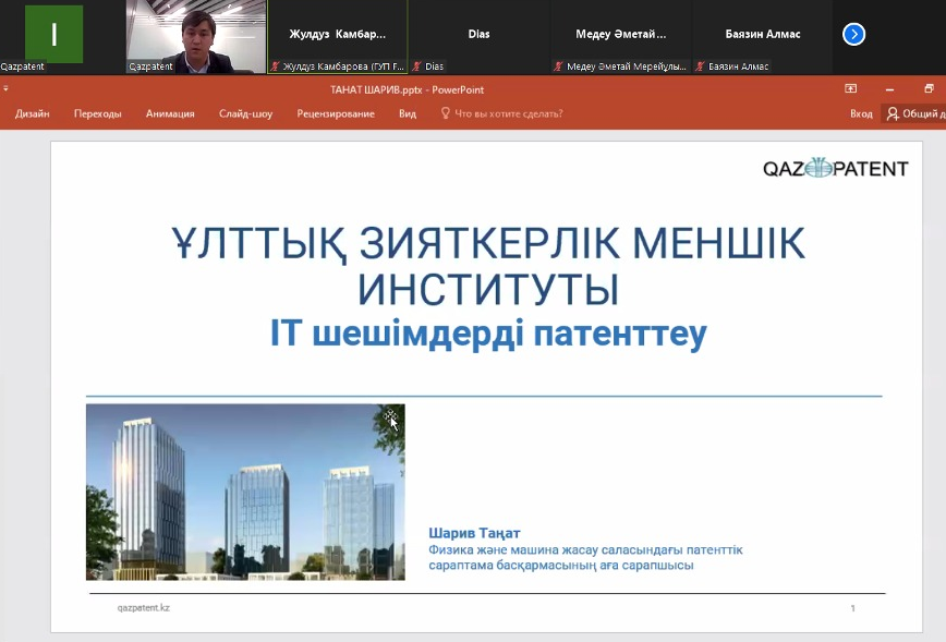 Вебинар аясында өнертабыстар мен пайдалы модельдерді ұлттық патенттеу, сондай-ақ Патенттік кооперация туралы шартқа (PCT) сәйкес өнертабыстарды халықаралық патенттеу мәселелері ашылды.