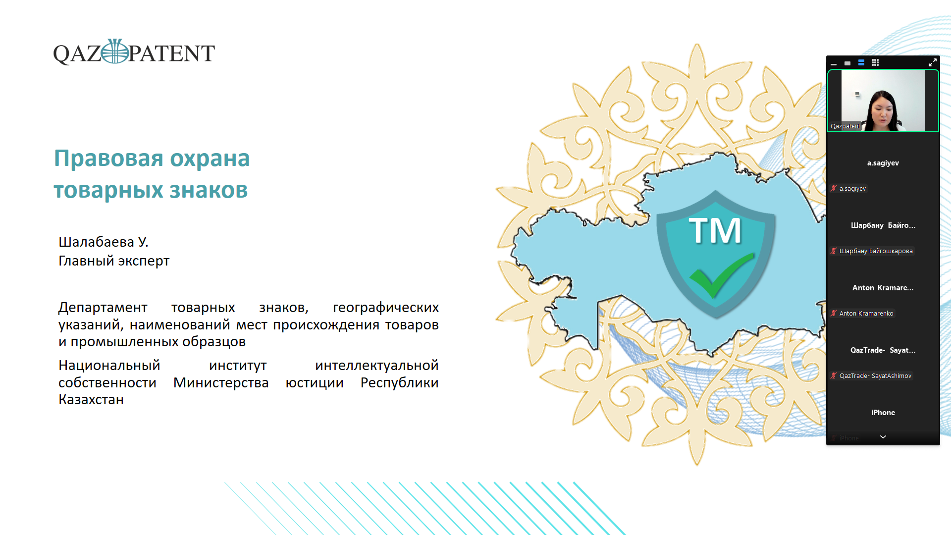 Семинар аясында ҚР кәсіпкерлері үшін өзекті қаржыландыру бағдарламалары, экспорт келісімшарттың қауіп-қатердің азайтуы, сенімді шетелдік сатып алушыларды анықтау әдістері, өндірістік шығындарды өтеуі, сондай-ақ Қазақстанда тауар белгілердің тіркеу ерекшеліктері талқыланды.