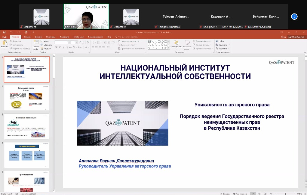 Вебинар шеңберінде Қазақстан Республикасында авторлық құқықты тіркеу, сондай-ақ Қазақстан Республикасында өнертабыстар мен пайдалы модельдерді патенттеу мәселелері ашылды.