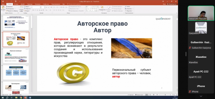 Вебинар шеңберінде Қазақстан Республикасында авторлық құқықты тіркеу, Қазақстан Республикасында өнертабыстар мен пайдалы модельдерді патенттеу, зияткерлік меншік объектілерін коммерцияландыру, сондай-ақ зияткерлік меншікті қорғау мәселелері ашылды.