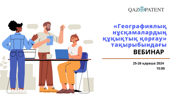 25-26 қарашада сағат 15:00-де Qazpatent «Атамекен» ҚР ҰКП мушелері үшін «Географиялық нұсқамалардың құқықтық қорғау» тақырыбында вебинар өткізеді.