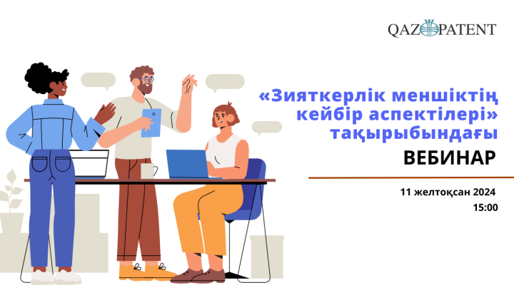 11 желтоқсанда 15:00 Qazpatent грант алушылар үшін «Ғылым қоры» АҚ-мен «Зияткерлік меншіктің құқық аспектілері» тақырыбында бірлескен вебинар өткізеді.