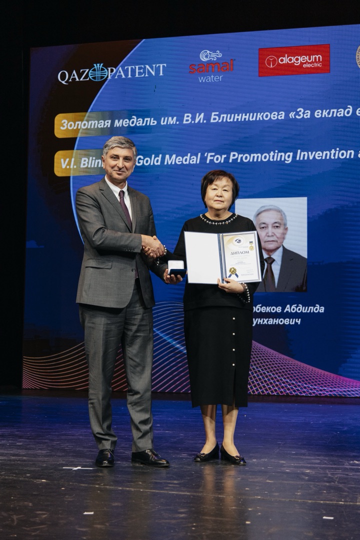 «Шапағат-2024» өнертабыс саласындағы жетістіктердің XX мерейтойлық республикалық байқауының салтанатты рәсімі аясында «Өнертапқыштық және патенттік іске қосқан үлесі үшін» В.И.Блинников атындағы алтын медальдар табысталды. Бұл марапат зияткерлік меншік пен өнертапқыштық қызметті дамытудағы ерекше еңбегін мойындаудың символы болып табылады.