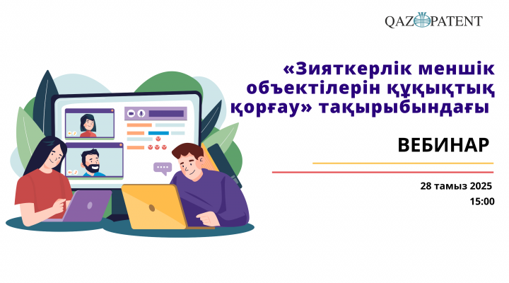 28 тамызда сағат 15:00-де Qazpatent «Ғылым қоры» АҚ-ның қызметкерлеріне және грант алушыларына үшін «Зияткерлік меншік объектілерін құқықтық қорғау» тақырыбында вебинар өткізеді.