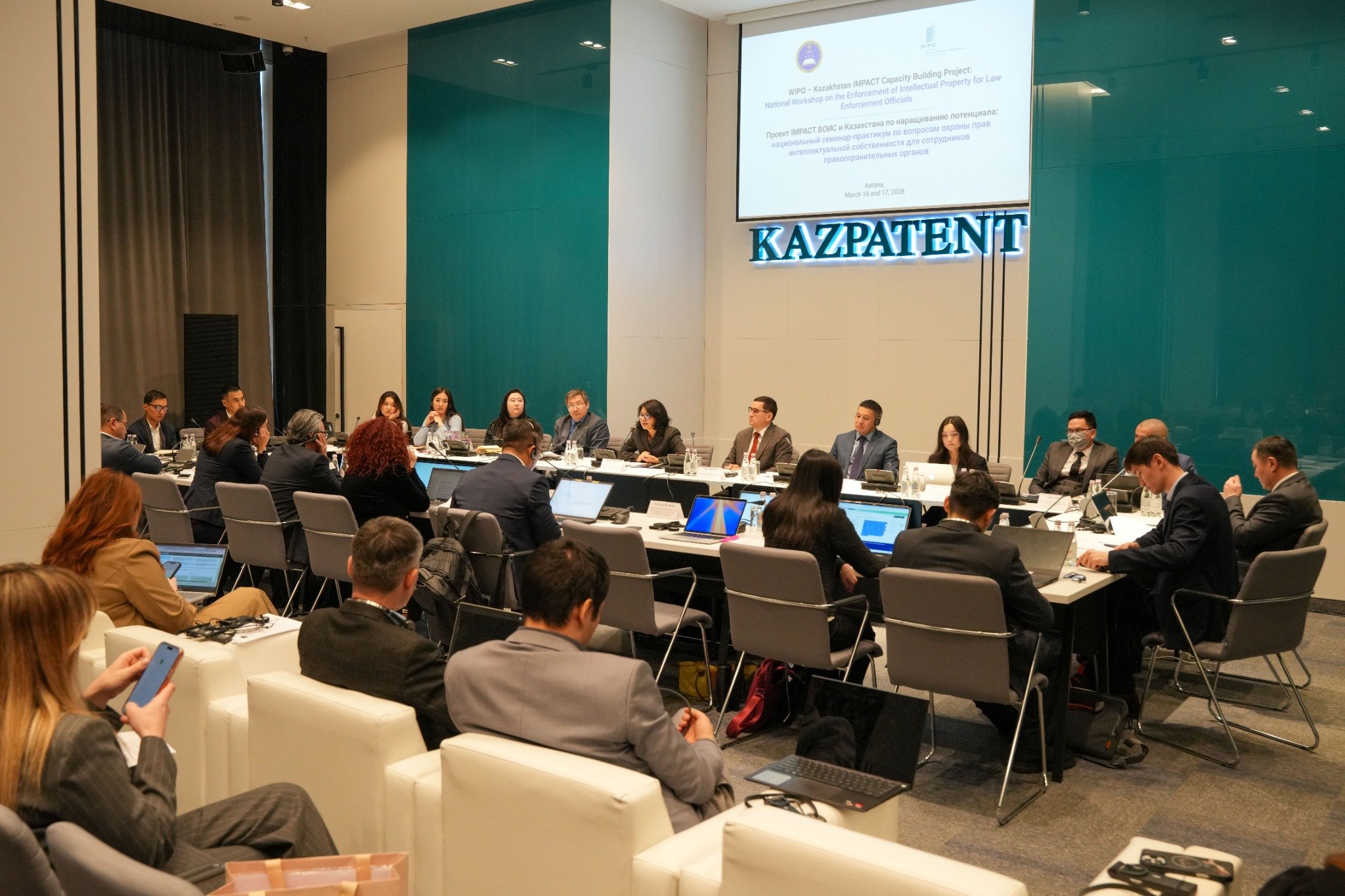 Астана қаласында Кazpatent алаңында Дүниежүзілік зияткерлік меншік ұйымы (ДЗМҰ) мен Қазақстан Республикасының бірлескен жобасы аясында, IMPACT бастамасы шеңберінде оқыту бағдарламасының офлайн кезеңі өтті. Осы кезең аясында құқық қорғау органдары қызметкерлеріне арналған зияткерлік меншік құқықтарын қорғау мәселелері бойынша ұлттық семинар-практикум ұйымдастырылды. Іс-шараның негізгі мақсаты – аталған саладағы кәсіби құзыреттерді арттыру және мемлекеттік органдар арасындағы өзара іс-қимылды нығайту.