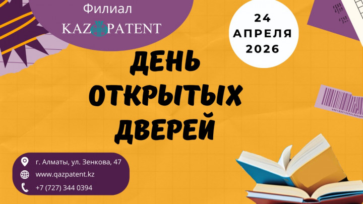 2026 жылғы 24 сәуірде Халықаралық зияткерлік меншік күні қарсаңында Алматы қ. Kazpatent филиалында Ашық есік күні өтеді.