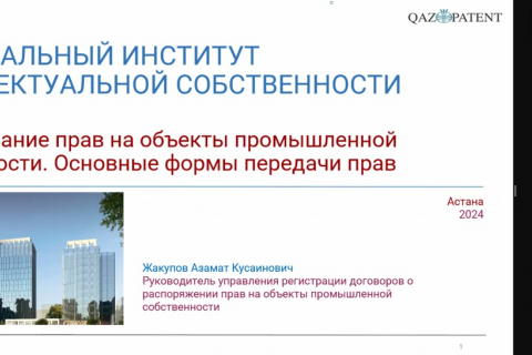 Qazpatent Заң консультанттарының республикалық алқасы үшін «Зияткерлік меншік объектілерін құқықтық қорғау» тақырыбында вебинар өткізді