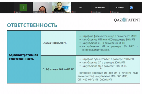 Qazpatent ҚР Ішкі істер министрлігінің, ҚР Қаржы мониторингі агенттігінің және Әділет департаментерінің қызметкерлеріне вебинар өткізді