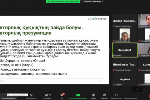 Kazpatent халықаралық білім беру корпорациясының профессор-оқытушылар құрамы мен студенттері үшін оқыту вебинарын өткізді