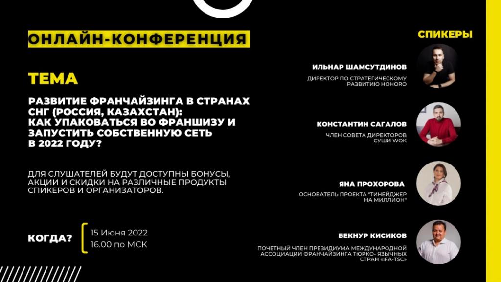 Тема конференции: «Как заработать на франчайзинге и запустить собственную сеть по СНГ в 2022 году?»