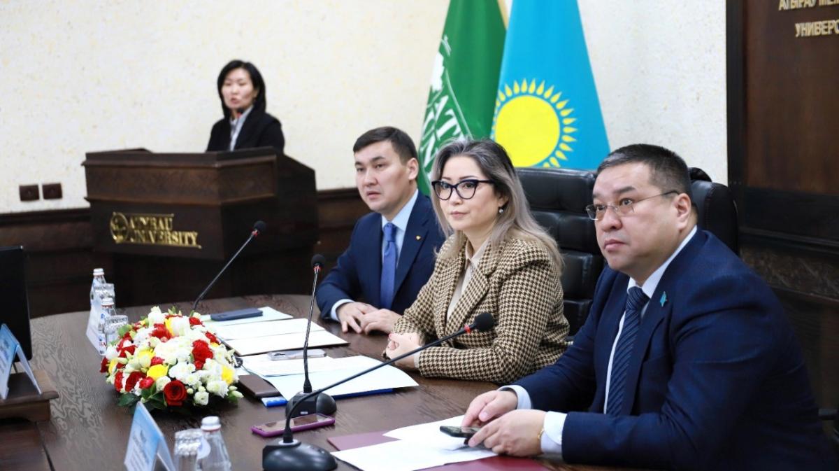 на фото слева направо:РуководительДепартамента юстиции Атырауской обл. Асулан Каримов,вице-министр юстиции РК Акерке Ахметова,ректор НАО «Атырауский университет имени Х.Досмухамедова» МОН РКИдрисов Саламат