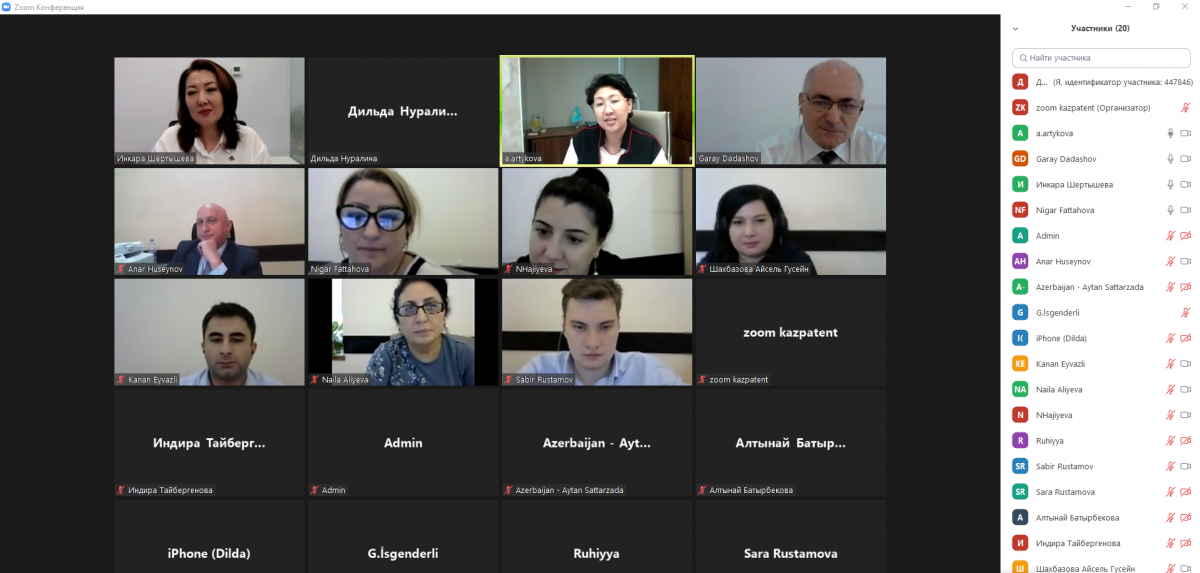 От лица казахстанской стороны онлайн встречу открыла заместитель директора Казпатента Айдын Артыкова, которая ознакомила слушателей с деятельностью Казпатента и подчеркнула значимость проведения подобных тренингов в целях достижения результатов по развитию двусторонних связей.