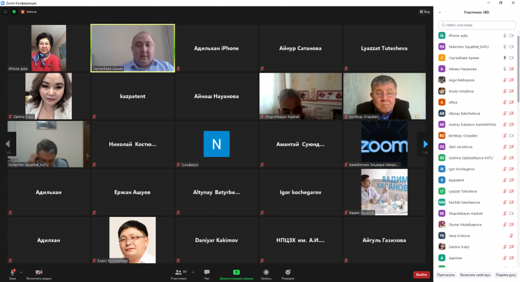 Сегодня 1 марта 2021 года Казпатент провел совместный с КАТУ им. С.Сейфуллина обучающий онлайн–семинар для профессорско-преподавательского состава ВУЗа. Более 70 участников приняли участие в качестве слушателей из числа представителей Научно-производственного центра зернового хозяйства им. А.И. Бараева, Научно-исследовательского института лесного хозяйства им. А.Н. Букейхана, Северо-казахстанской сельскохозяйственной опытной станции.