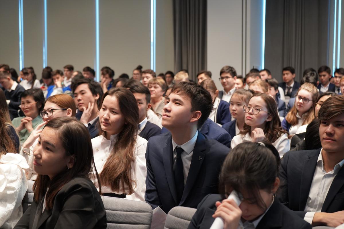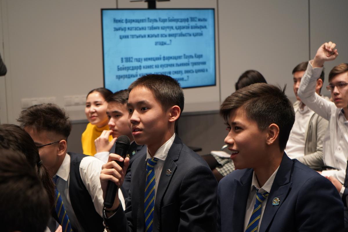 Школьникам представилась возможность пообщаться с их сверстником – изобретателем, автором патента на полезную модель №4495 «Куполообразный солнечный трекер», учеником 11 класса КГУ «Специализированная школа № 9 «ЗЕРДЕ» Темирланом Рахимбаевым, который поделился опытом изобретательства, ответил на вопросы аудитории.