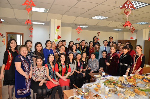 Сотрудники Института с удовольствием подготовились к празднику, в каждом Департаменте присутствовал самобытный национальный колорит. Главным блюдом на столах был Наурыз көже!