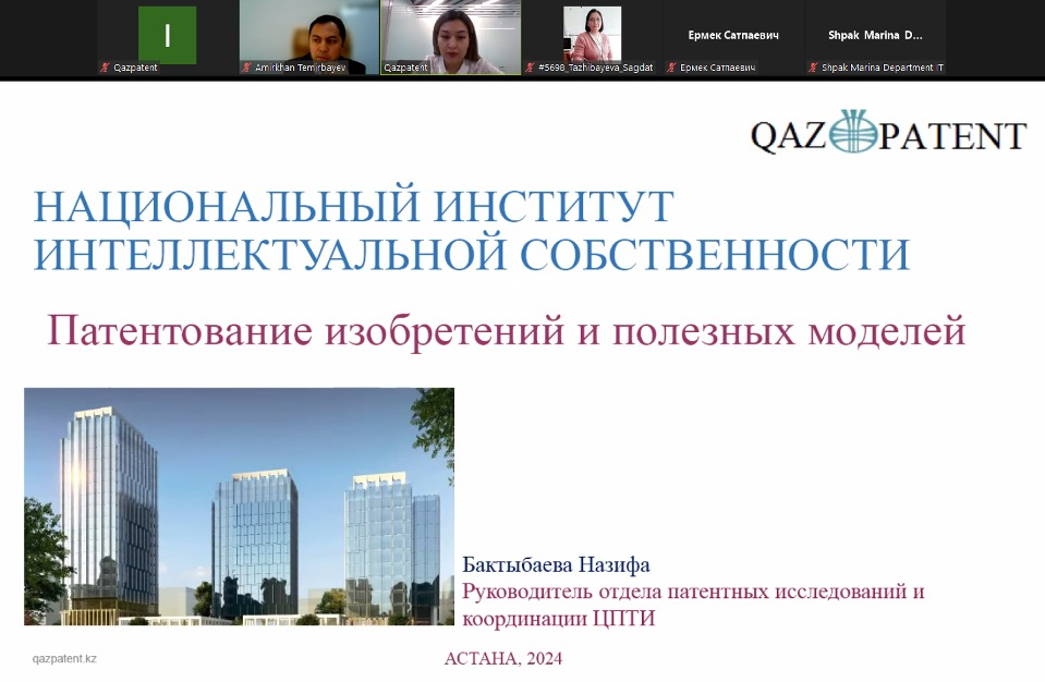 18 апреля Qazpatent провел вебинар для профессорско-преподавательского состава Казахского Национального Университета имени аль-Фараби на тему «Некоторые аспекты интеллектуальной собственности».