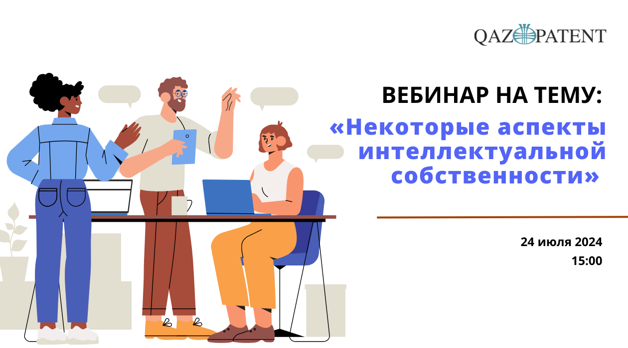 24 июля в 15:00 Qazpatent проведет вебинар для членов ОО «Ассоциация бизнес тренеров» на тему «Некоторые аспекты интеллектуальной собственности».